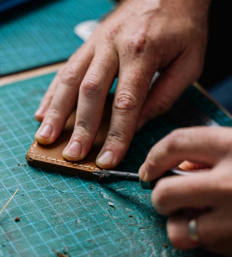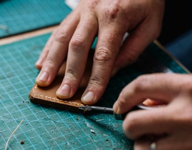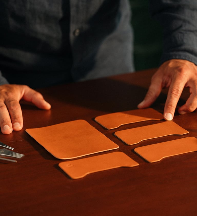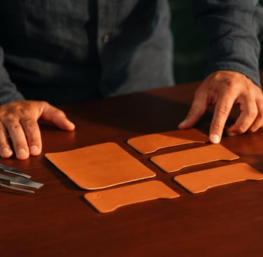 Je travaille exclusivement des cuirs à tannage végétal, dits traditionnels, choisis pour leur authenticité, leur patine naturelle et leur capacité à traverser le temps.